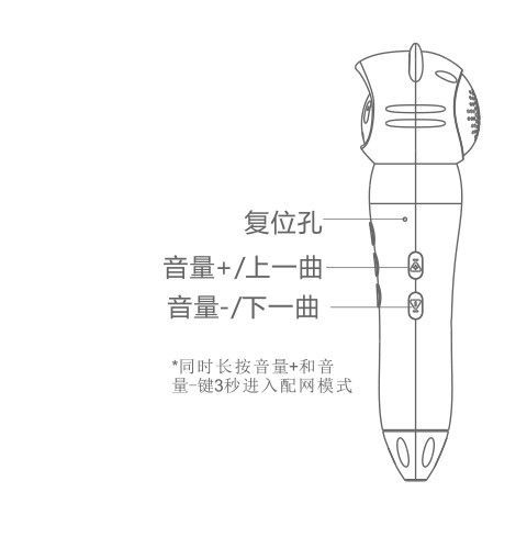 * 曲目切换:长按”音量+” 键可以切换上一曲播放,长按”音量-”键可以切换下一曲播放。